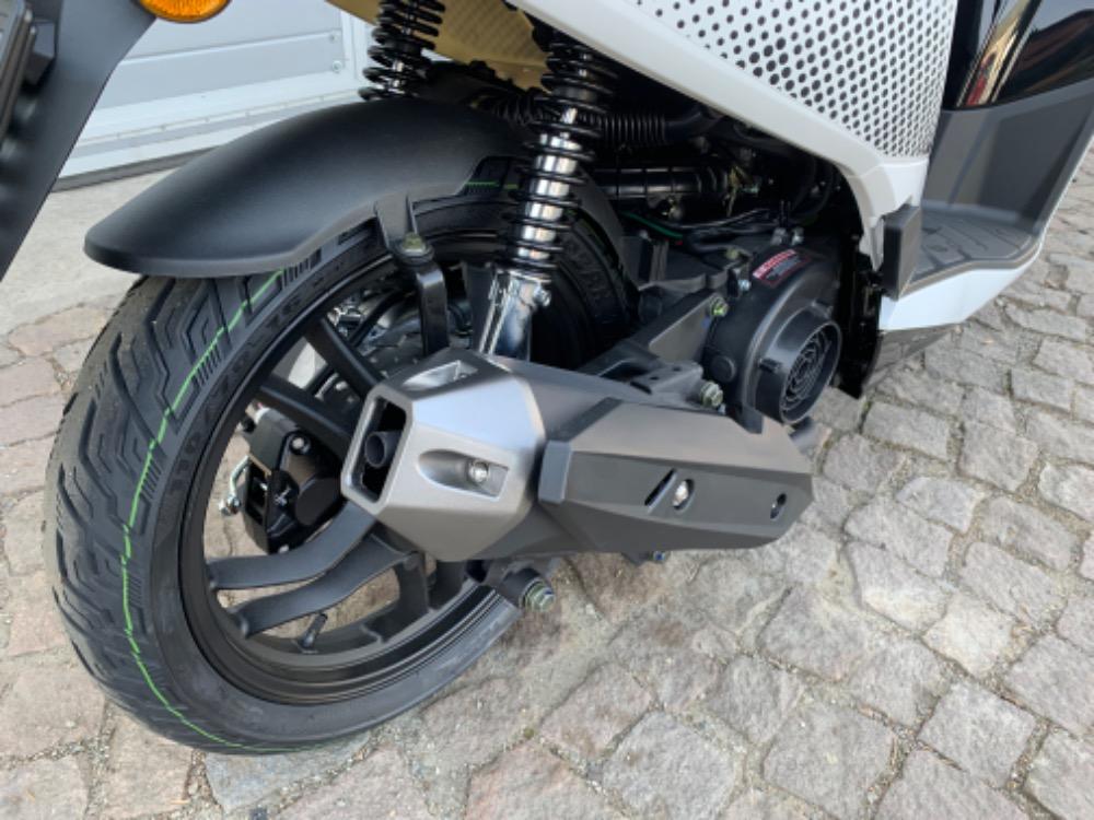 Motor: 124,6ccm, 4T - vstřikování, vodou chlazený motor, 6-ti stupňová manuální převodovka, 10 kW