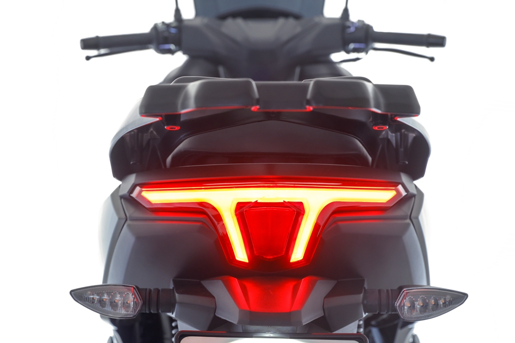 Skútr Yuki 125i YMAX je vybavený TFT displejem, systémem Start-Stop, alarmem, bezdrátovým klíčkem, mohutným nosičem pro kufr a přední jízdní HD kamerou.